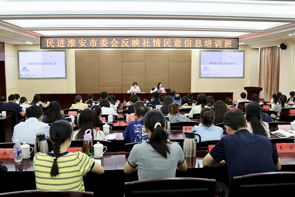 8月20日下午,民进淮安市委会在市政府会议中心举办反映社情民意信息专题培训班。民进淮安市委会主委、市民政局局长李萍主持并讲话,副主委胡珍、赵桐,民进省委委员王丹,部分市委委员,各基层委员会、总支、支部负责人、骨干信息员及青工委委员共90余人参加培训。培训特邀民进省委会参政议政处二级主任科员马乐为参训会员授课。培训分两个阶段,第一阶段为反映社情民意信息专题讲座;第二阶段是社情民意信息座谈会。