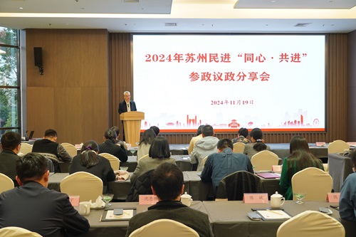 11月19日,2024年苏州民进“同心·共进”参政议政分享会在苏举行。民进江苏省委会副主委、苏州市委会主委钱振明,民进江苏省委会调研处处长季伟,苏州市政协提案委副主任乔湘流,民进苏州市委会专职副主委於亚萍,中共苏州市委统战部党派处处长单永泰,苏州市教育局统战与群工处副处长杭金亮参加活动。