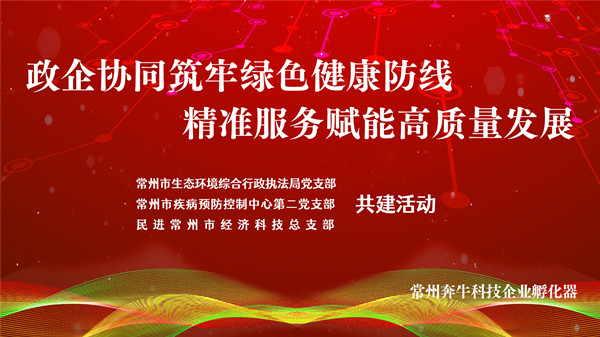 2025年4月 11 日下午,民进常州市经济科技总支部携手市生态环境综合行政执法局党支部、市疾病预防控制中心第二党支部在常州市新北区奔牛科技企业加速器园区联合举办 “政企协同筑牢绿色健康防线 精准服务赋能高质量发展”共建活动,通过党建引领、政企联动,为企业高质量发展注入新动能。市人大常委会委员、民进市委会委员、经科总支主委王寅,总支副主委周晔,市生态环境综合行政执法局四级高级主办张岚,市疾病预防控制中心第二党支部书记、食源性与环境疾病监测防制所所长陈小岳,市政协委员、民革天宁基层委副主委、市疾控中心放射与卫生科副科长汪国海等参加活动。