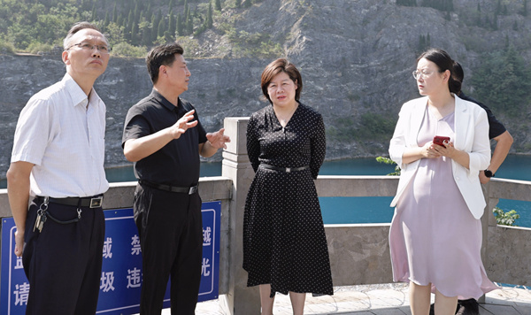 李萍一行实地考察了盱眙象山国家矿山(地质)公园,听取了盱眙地质演变情况和象山国家矿山公园建设、生态修复治理及文旅项目开发情况。