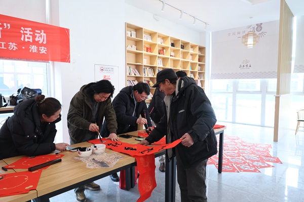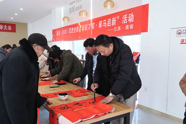 新春将至,年味渐浓,1月28日下午,民进淮阴区基层委员会组织书法家、书法爱好者走进红色热土刘老庄镇,在淮安书房开展“春联万家·策马启新”活动,为群众送去新春祝福。
