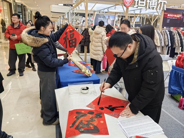 活动现场,书法家李守卫、赵继军等民进会员凝神聚气、笔走龙蛇,楷书端庄大气、行书飘逸洒脱,“骏马奔腾迎盛世,春风浩荡展宏图”“福满家门添喜气,策鞭奋进启新程”等一副副寓意吉祥的春联跃然纸上。群众或驻足围观、轻声念诵,或排队等候、挑选心仪的对联,孩子们则好奇地踮脚观看,不时发出阵阵赞叹。电信志愿者们一边协助铺纸研墨,一边将写好的春联和“福”字递到群众手中,墨香与欢笑声交织成冬日里最温暖的画面。