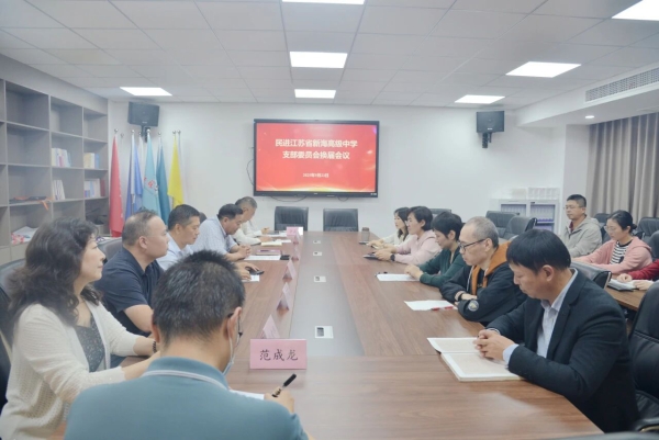 9月23日下午,民进江苏省新海高级中学支部换届工作会议在新海高级中学顺成楼一楼东会议室召开。市政协副主席、民进市委会主委徐善明,民进市委会委员、内部监督委员会副主任伏广志等出席会议。新海高级中学党委书记顾爱军,办公室主任张迎弟应邀出席会议。民盟新海高级中学支部副主委彭爱华应邀到会祝贺。10余名支部会员参加会议。民进市委会组宣处副处长范成龙主持会议。