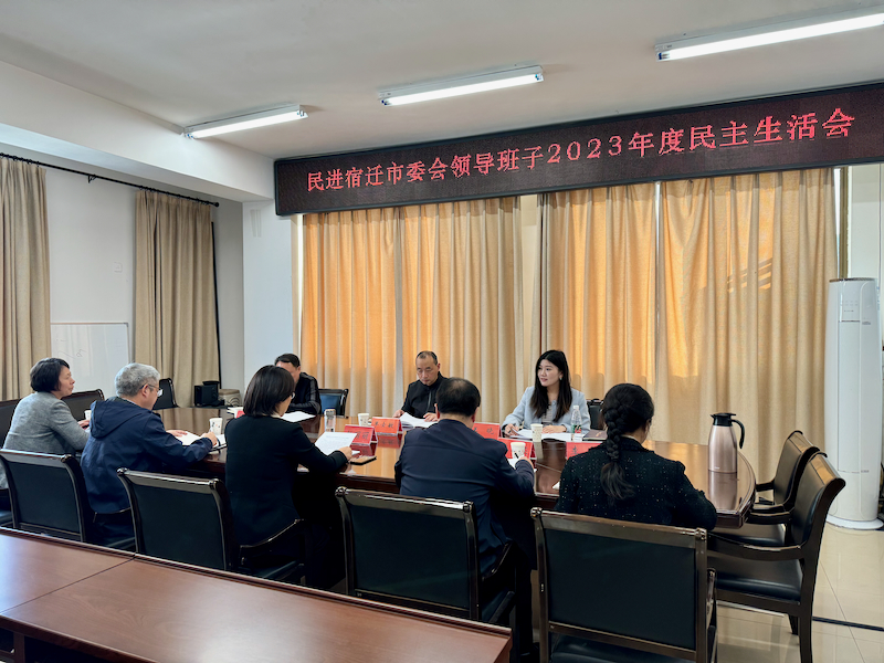 2023年11月8日,民进宿迁市委会召开领导班子2023年度民主生活会。市人大常委会副主任、民进宿迁市委会主委赵丽丽,市委会副主委、市中院专委董振班,宿迁学院副院长、市委会副主委施正荣,市委会副主委、沭阳县副县长原宪萍出席会议,就班子和个人在思想、作风、履职、廉政方面作了检视剖析,并互相提出批评意见。