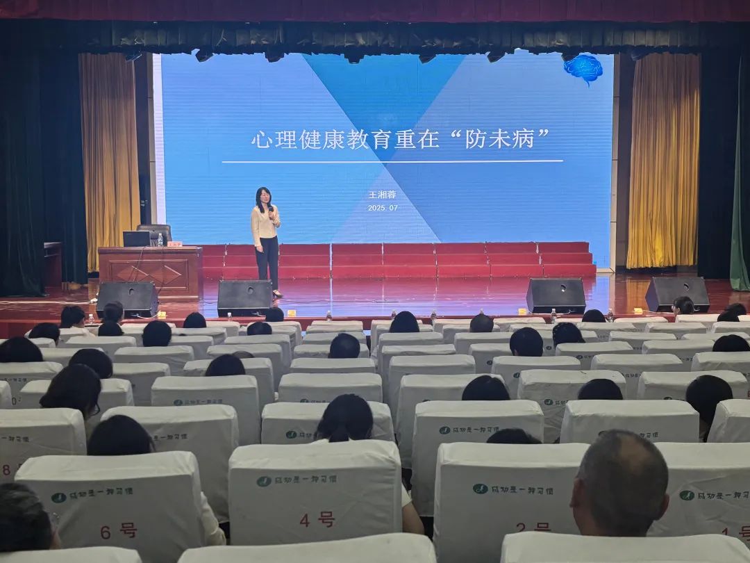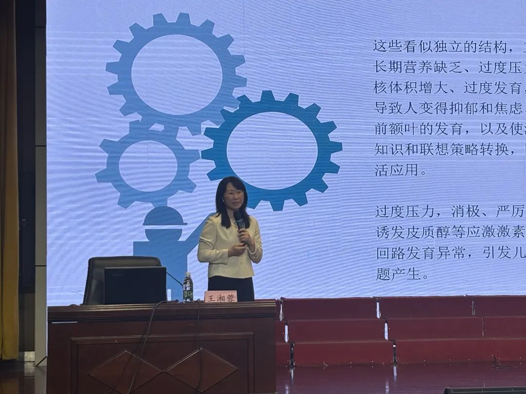 活动特邀民进中央教育委员会秘书长,光明日报《教育家》杂志的副总编辑——王湘蓉。讲座中,王湘蓉从当前青少年心理健康教育现状,心理健康教育“防未病”科学理念,以及构建家校社协同的良好“防未病”机制为出发点,深刻探讨了家庭中如何处理亲子关系、社会交往中如何处理伙伴关系,如何为青少年成长构建良好的心理健康教育生态。王老师以其深厚的学养、广阔的视野和生动的语言,阐释了“防未病”这一心理健康教育的核心理念,分享了前沿的思考与宝贵的实践经验,内容既有理论高度,又有实践温度。
