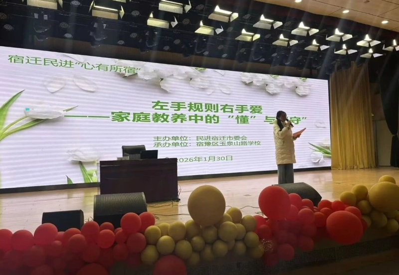 为进一步贯彻落实统战系统“同心•五送”工作精神,发挥民进界别在教育领域的专业优势,做优做实关爱青少年成长工作,1月30日,民进宿迁市委会走进宿豫区玉泉山路学校,面向学生家长们举办了一场主题鲜明、意义深远的家庭教育讲座,讲座还通过微信短视频进行了直播,线上线下共计1500人次观看了讲座。