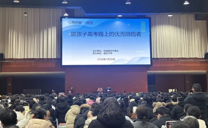 1月30日晚,宿迁民进“心有所宿·夜校”系列第二讲《做孩子高考路上的优秀陪跑者》在宿迁中学体育馆温情开讲。宿迁中学高三学生家长共计1000余人参加了讲座,线上300余人观看了直播。