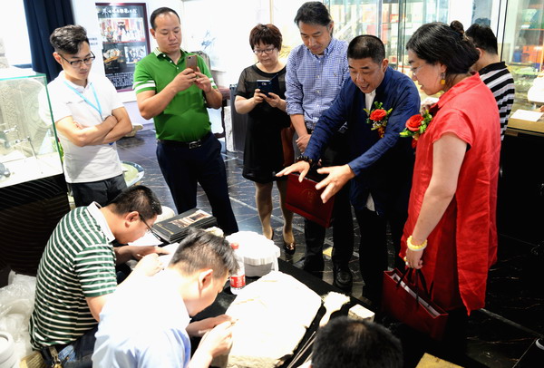 蔡云娣师徒共拿出800件作品进行义卖,均为精雕细琢之作、古朴典雅,具有非常高的审美价值及收藏意义。活动现场大咖云集,多位知名艺术家也到场支持,与广大市民零距离交流文艺心得,展示传统技法,给大家带来最直观的文艺体验。蔡云娣徒弟们现场展示精湛技艺,刀笔耕耘,精致细腻,给观众们一场视觉上的盛宴。