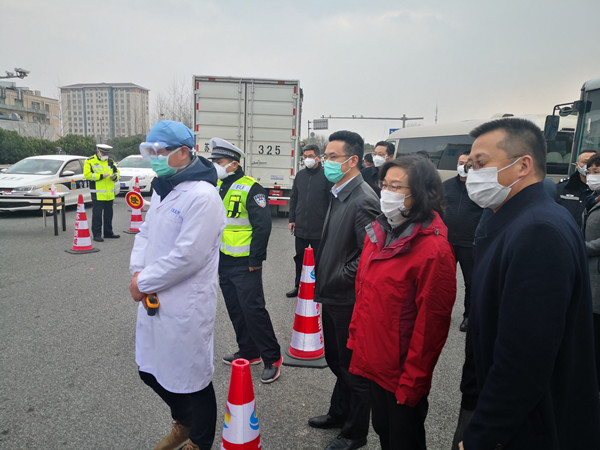 民进吴中区委主委、吴中区副区长周黎敏在高速公路口进行排查和体温检测