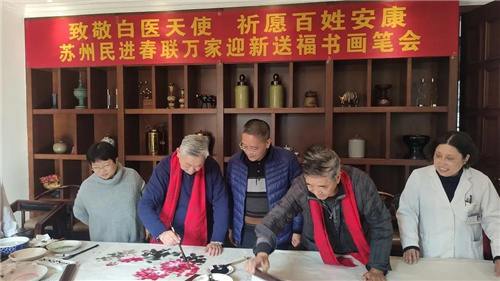 12月24日,致敬白衣天使 祈愿百姓安康——苏州民进“春联万家”迎新送福笔会在市立医院北区举行。苏州市立医院副院长孙康云、党委副书记倪琪峰、民进苏州市委副主委陆丽瑾、秘书长黄素心、办公室主任华军参加了此次活动。