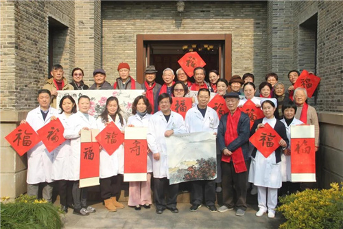 尽管室外已是天寒地冻,但笔会的气氛却是热火朝天。费之雄、李大鹏、宫音、奚乃安、杨丽华、张鐘、顾荣元、程宗元、汪鸣峰、王大夷、张青涛等民进书画家们泼墨挥毫,一幅幅喜气洋洋的福字致敬坚守健康战线的白衣天使们,一幅幅医卫主题的书画作品洋溢着对白衣天使们由衷赞誉。书画家们当场创作了书画作品十余幅,福字六十余幅,为他们献上了丰富的艺术大餐。