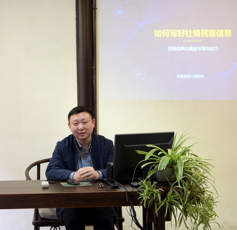 在社情民意信息专题辅导环节,民进江苏省委会调研处二级主任科员江斌斌以“如何写好社情民意信息”为题,结合自身工作经验和大量典型案例,从信息的功能定位、选题方法、撰写技巧等方面作了系统讲解。他特别强调,信息工作要聚焦党委政府中心工作和群众关切,找准“小切口”,通过“深调研”提出“实建议”,切实提升信息的针对性、可行性和时效性。整场讲座内容充实、指导性强,为会员们提供了务实管用的方法指引。
