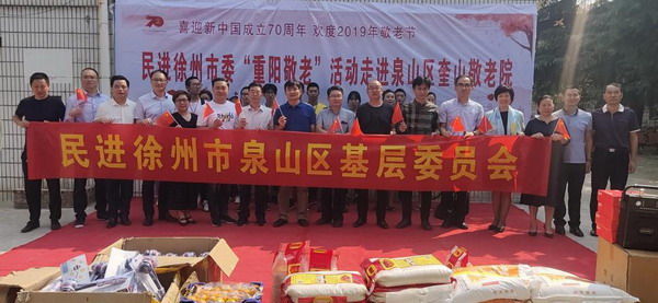老吾老以及人之老,幼吾幼以及人之幼,为弘扬中华民族尊老、爱老、敬老、助老的传统美德,重阳节前夕,民进泉山区基层委员会联合民进体育支部发起“情满九月九 爱在夕阳红”慰问活动。他们来到奎山敬老院,为老人送去节日的祝福和米、面、油等慰问品,并在现场表演了丰富多彩的节目。借助此次活动让更多的人关注人口老龄化问题,传播爱心,传承文明。