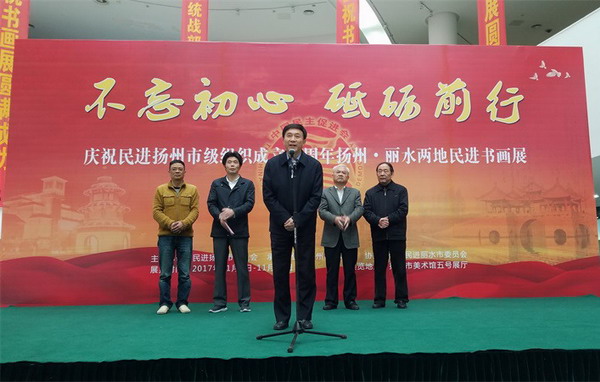 “不忘初心、砥砺前行——庆祝民进扬州市级组织成立60周年扬州、丽水两地民进书画展”在扬州市美术馆开展。书画展征集了扬州、丽水两地民进书画界会员作品近90幅,都是近年来创作的精品佳作,书画家们以笔墨色彩,真挚情怀,抒发了对民进组织的深厚情感。展览将持续到11月23日。