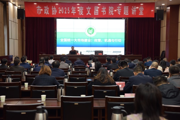 2025 年11月3日,民进镇江市句容支部会员高恺博士应句容市政协邀请做客文昌书院,以《全国统一大市场建设:政策、机遇与行动》为题,带来一场兼具理论深度与实践价值的精彩讲座。