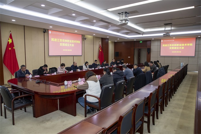 2025年12月22日,民进江苏农林职业技术学院支部成立大会在学校综合楼九楼会议室隆重召开。镇江市政协副主席、民进镇江市委会主委、江苏大学副校长陈红,江苏农林职业技术学院党委副书记、院长潘永圣,中共镇江市委统战部副部长韦丹启,中共句容市委常委、统战部部长、市政协党组副书记高发巧,江苏农林职业技术学院党委委员、组织部统战部部长丁威,民进镇江市委会委员、高职校支部主委黄爱国,民进镇江市委会内部监督委员会委员陈松林,江苏农林职业技术学院教育教学督导处处长、民盟江苏农林职业技术学院支部副主委张小华等领导和嘉宾出席会议。会议由民进镇江市委会专职副主委尹红敏主持。