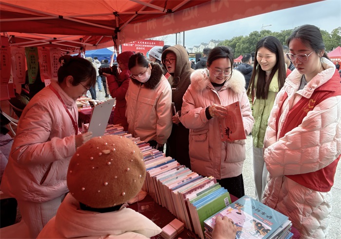 1月31日上午,句容市下蜀镇法治文化广场上张灯结彩、热闹非凡、年味浓郁,“茉莉花开”文艺轻骑兵志愿行——“强基工程”2026江苏新春特别行动启动仪式在这里隆重举办。启动活动由省文联主办,活动现场特别设置文艺演出、书法家写福字送春联、青少年民俗公教活动等,民进镇江市句容支部承办了其中的“猜灯谜、送新书”活动。
