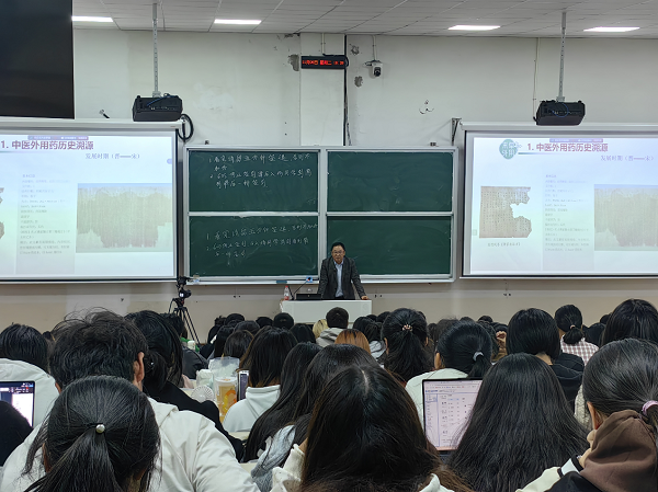 11月4日,民进南京中医药大学总支主委、江苏省中医外用药开发与应用工程研究中心副主任陈军教授在南京中医药大学泰州校区J2-302教室为研一学生和本科生举办“中医外用药概述与展望”专题讲座。该讲座是药学院橘泉书院举办的弘景讲坛系列讲座之一,近300名同学现场聆听了讲座。