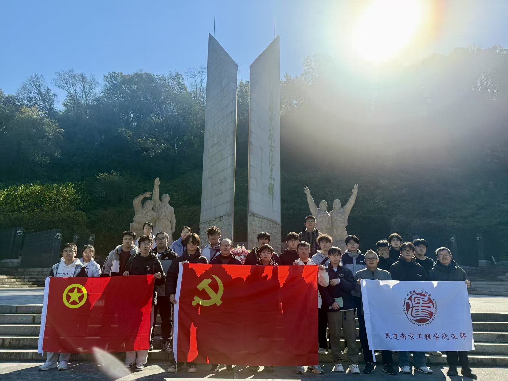 11月20日,民进南京工程学院支部与校人工智能研究院师生代表,共同前往南京下关火车站旧址与抗日航空烈士纪念馆,开展“凝心铸魂强根基,科技报国建新功”主题教育活动。此次活动旨在通过实地研学,回顾峥嵘岁月,坚定理想信念,激发师生投身国家科技自立自强事业的使命感和责任感。