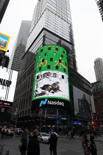 在大洋彼岸的纽约时代广场,纳斯达克大屏上出现了苏州民进会员周矩敏的画作以及言恭达的书法,让我们一起来看: