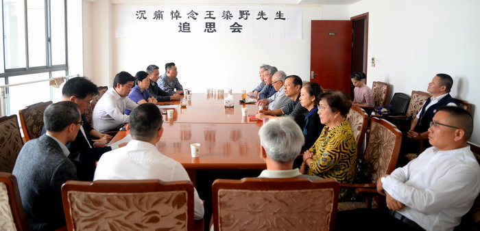 追思会上,区文体旅局局长唐峥嵘同志介绍了王染野先生生平,详实地追忆了王老在文化领域,特别是诗词、散文、革命话剧、现代越剧、沪剧、京剧、淮剧、吕剧、歌剧、小说创作历程和成果,以及在戏剧研究、修志编史的突出贡献。唐局长指出王老“在几近70多年的创作生涯里,无论是多么艰苦的工作环境,还是多么坎坷的工作经历,王染野同志总是以坚定的政治感、坚韧的意志力和强烈的责任心从容面对,他对待革命忠贞不渝、对待创作满腔热情、对待工作严谨守纪,至始至终都对他钟爱的文化艺术事业尽心尽责、无私奉献,不折不扣完成党和人民交给的各项任务。”晚年时,“王染野同志始终保持革命乐观主义精神,一边用坚强的意志顽强地与病魔作斗争,一边用对诗歌、对散文、对戏剧、对创作的热情与挚爱,为社会主义文化艺术事业鞠躬尽瘁,奉献一生。”