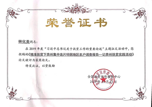 从国务院扶贫开发领导小组办公室传来消息,苏州民进会员林化美《精准扶贫下贵州集中连片特困地区农户调查报告》,张林《论新时代扶贫理念的重塑与创新》入选2019年“学习习近平总书记关于扶贫工作的重要论述”征文获奖名单。