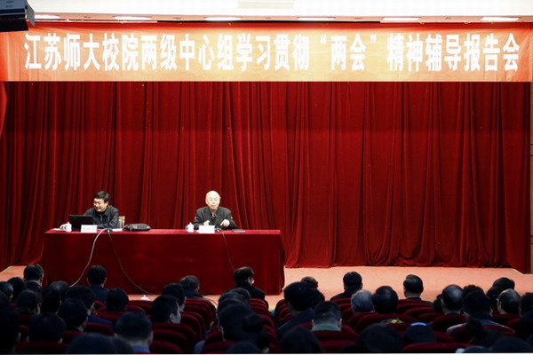3月21日下午,民进中央常委、江苏省委主委,省政协副主席,南京师范大学副校长朱晓进教授,在江苏师范大学泉山校区敬文报告厅作了一场“两会”精神专题辅导报告。
