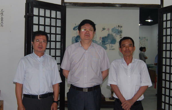 王同顺(右)与民进市委副主委李柏嘏、李耀明(左)合影