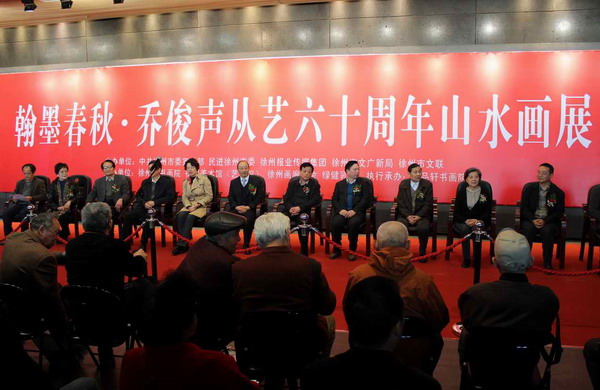 由民进徐州市委、徐州市委宣传部、徐州报业集团、徐州市文广新局、徐州市文联主办的《翰墨春秋——乔俊声从艺60周年山水画展》,于4月18日上午在徐州美术馆开展,市政协副主席、民进市委主委孙红旗,民进市委副主委王德志参加开幕式。