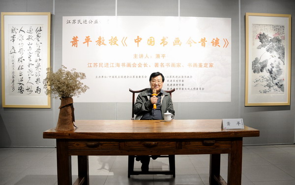 4月24日下午,由民进江苏省委主办,江苏民进江海书画会、民进苏州市委、民进淮安市委和民进淮安市委文化工作委员会承办的,江苏民进公益讲堂——萧平教授《中国书画今昔谈》,《三月蕙风—姑苏女画家三人作品展》,同时在淮阴艺术馆开幕。