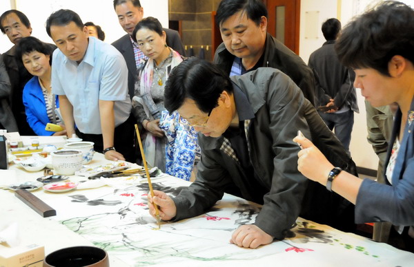 民进淮安市委主委王莉莉主持了公益讲堂的开幕式,民进江苏省委副主委朱毅民在开幕式上致辞。淮安市美术家协会主席、淮安市开明书画院院长华龙宝先生主持了画展开幕式,萧平教授代表江海书画会为画展致辞,女画家钱蓉蓉代表三位女画家致辞。淮安民进近60多人参加了活动。