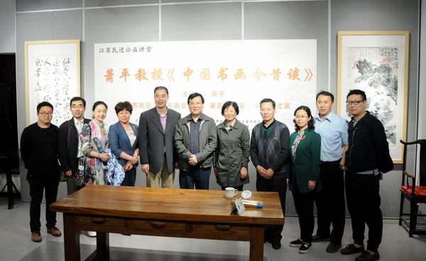 在公益讲堂上,萧平教授对中国书画艺术的渊源与发展,并通过自己的亲身体会与大量书画史的典故,讲述了中国书画艺术的魅力所在,强调了文化自信,使大家受益匪浅。讲座结束后,又为淮安民进的书画家的作品进行评点分析,交流书画创作的体会与经验,通过对每幅作品有针对性的点评,使书画家们受益良多,拓宽了眼界与创作思路。