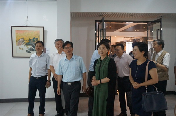 徐平在开幕式上致辞,他说,2017年是民进江苏省级组织成立60周年,7月1日又恰逢中国共产党96华诞。为此,从年初开始,民进镇江市委会在全会上下开展“不忘合作初心,继续携手前行”主题教育活动,进一步强化广大会员“以党为师,立会为公,参政为民”的理念。此次画展既是会员学习成果的一次集中展示,更是为中国共产党成立96周年和民进省级组织成立60周年献上的一份厚礼。多年来民进镇江市委会以书画研究会为载体,潜心耕耘,在培养书画艺术人才的同时,也在提高会员整体素质上勇于创新,取得了突出的成就。镇江民进会内书画家们通过各种活动,以笔墨寄情,以书画言志,彰显积极向上和追求进步的激情,充分展示了民进会员过硬的的政治素养和弘扬民族精神文化的良好社会形象,把书画研究会打造成弘扬传统文化和传递社会正能量的文化阵地,为繁荣镇江文化事业作出了积极的贡献。