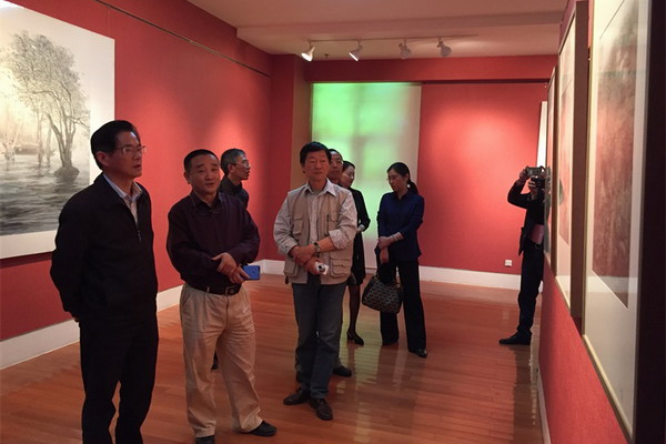 镇江市民进书画研究会一行首先赶往苏州工艺美术职业技术学院,参观了民进苏州市委委员、苏州市美协副主席兼秘书长陈危冰的个人画展——“田园山水母校行”。镇江书画家们仔细观看了参展的每幅作品,并与陪同的苏州民进书画家交流创作心得。徐平主委还向陈危冰详细了解他每幅作品创作的背景、灵感和过程。