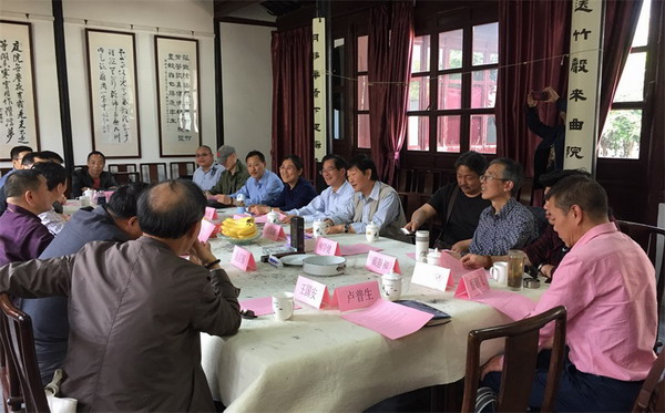 中午与苏州民进的同志进行了短暂的会务交流后,下午书画家一行还参观了苏州国画院和俞樾故居。在俞樾故居的会议室里,两地书画家进行了交流座谈。陈危冰代表苏州民进介绍了苏州书画界的概况以及苏州民进会内书画家近年来在开展书画活动和对外交流等方面的情况,他同时表达了和镇江书画家开展进一步交流合作的意愿。徐平主委代表镇江民进向苏州民进的热情接待表达了感谢,他对苏州深厚的文化底蕴赞叹不已,对苏州民进书画界会员近年来取得的成绩大加赞赏。徐平主委在讲话中还指出,镇江民进书画界会员不仅要多向苏州学习,也欢迎苏州民进书画界会员到镇江交流工作,加强两地互动,共同开展一些丰富多彩的书画活动。最后,在徐平主委的倡议下,两地书画家还建立了微信交流群。