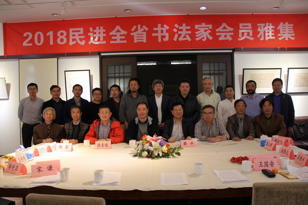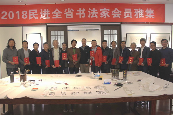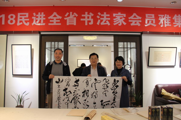 民进省委副主委朱毅民对书法家会员的到来表示欢迎,感谢会员们特别是江海书画会会长萧平先生长期以来对会务工作的大力支持。他介绍,民进省委今年来组建了江苏民进美术馆联盟,汇集会员个人的18家展馆,将以此为平台倾力服务于民进书画界会员。同时,民进省委还将通过不同形式的活动,激发书画界会员活力,促进艺术家们之间的交流,共同提升,形成合力。