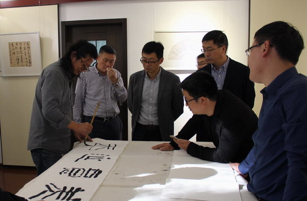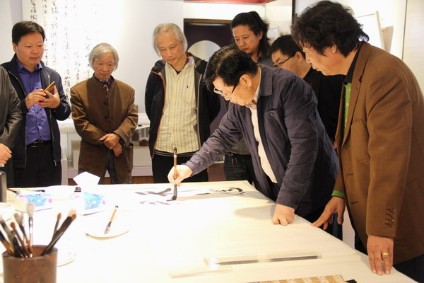 随后,民进中央开明书画院副院长徐圭逊及来自全省各地的十余位书法家开始挥毫创作,在创作中交流研讨,互相提升。书法家们也把部分创作的书法作品捐赠给民进省委。