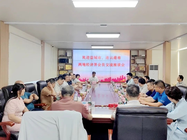 在随后的座谈会上,胡志成、项良平分别介绍了民进盐城市、连云港市两地经济界会员联谊会的基本情况、运行机制、工作做法及取得的成绩经验。双方就两地营商环境政策、企业发展、交流合作等方面进行了深入探讨,并达成共识。