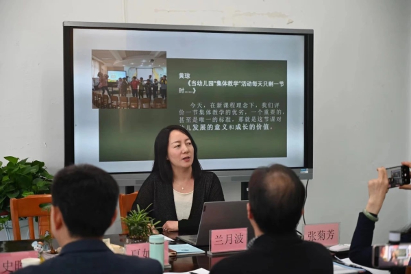 民进淮阴师范学院总支副主委夏如波充分肯定了盱眙县在幼儿园课程游戏化改革行动中的积极作为与阶段成效,并从学前教育理论原点出发,以现场活动为例与老师们一起思考怎样从幼儿的兴趣、生活、资源、游戏等方面去理解孩子,基于幼儿未来发展促进孩子有意义的学习与成长。