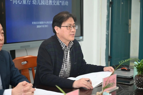 为深入贯彻落实《3-6岁儿童学习与发展指南》《幼儿园保育教育质量评估指南》精神,进一步推进江苏省幼儿园课程游戏化改革,加强淮安市城乡幼儿园深度交流,实现教育资源共享和优势互补。近日,民进淮阴师范学院总支,市政协委员、民进会员杨定平和志愿者们一起走进盱眙县旧铺镇中心幼儿园,开展“同心童行·幼儿园送教交流”活动,盱眙县相关幼儿园园长、骨干教师代表30余人参加了活动。