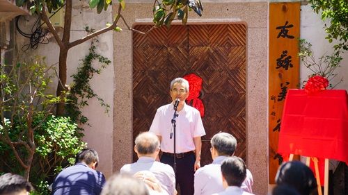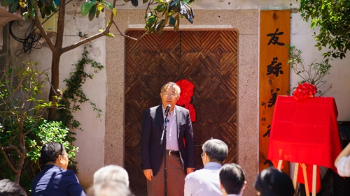 民进苏州市委会专职副主委於亚萍和谢友苏一起为“江南文化体验点”揭牌。