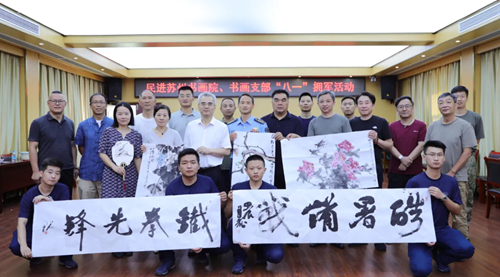 7月30日下午,苏州民进书画院、民进书画支部书画家来到东部战区空军某部开展书画拥军活动。民进江苏省委会副主委、苏州市委会主委钱振明,某空军部队特级飞行员、指挥员黄灵伟,书画界会员丁建中、华军、卢月龙、张建明、张小芹、顾林男、叶蓓蓓、许伟清、阿丁等参加活动。