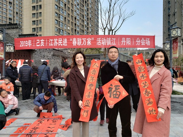 翰墨飘香送春联,文化惠民暖人心。为营造浓郁的节日气氛,弘扬中华优秀传统文化,1月25日,由民进镇江市委、民进丹阳基层委员会主办的2019年镇江民进第三场“春联万家”活动在丹阳市美术馆(三吕故居)广场举行。活动以春联为媒,将浓浓的新春祝福送进群众的心田,吸引了大批市民参与。