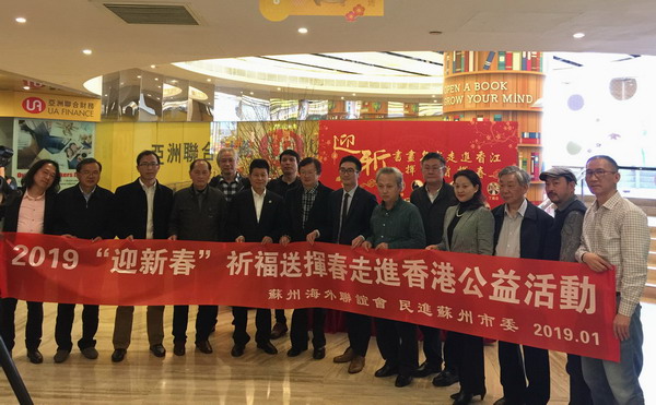 去年春节前夕,由民进苏州市委会、苏州市海外联谊会等主办的“2018迎新春祈福送挥春走进香港”公益活动,一连3天,10位来自苏州的民进书法家先后走进将军澳广场、香港大公文汇传媒集团、香港江苏社团总会,为香港各界人士送挥春、送祝福。这一活动受到香港市民的热烈欢迎。今年,苏州书法家们又再度相约,在春节到来前赴港澳,为香港和澳门市民献上来自苏州的新春祝福和文化盛宴。