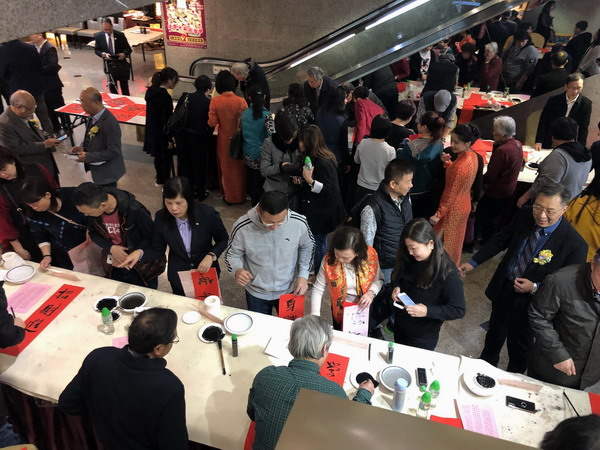 这两场活动也受到了港澳各界人士的热烈欢迎。现场群众络绎不绝。据不完全统计,先后有两千人次涌入活动现场,有时甚至出现一联难求的“盛况”。四场活动下来,从苏州带来的3000张对联纸、3000个“福”字斗方,全部写完并送出。