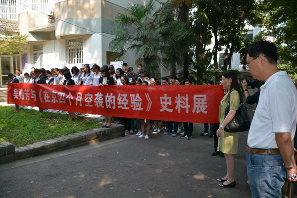 今年是全民族抗战爆发80周年,同时也是南京大屠杀发生80周年。9月18日上午,江苏省组织全省防空警报试鸣活动,以警示和教育人们“勿忘国耻,不忘忧患”,民进南京市委举办的“吴贻芳与《在京四个月空袭的经验》史料展”在南京师范大学随园校区吴贻芳纪念馆开幕,南京市政协副秘书长、民进南京市委专职副主委于玛莉带领全体机关同志出席。