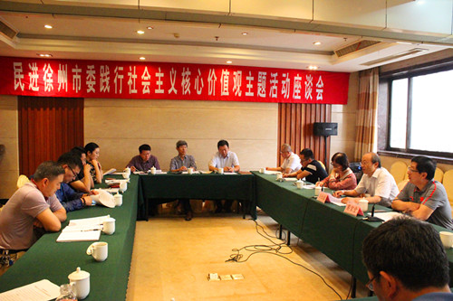 9月26日下午,民进徐州市委召开践行社会主义核心价值观主题活动座谈会。市政协副主席、民进市委主委孙红旗参加会议,与民进市委委员、支部主委和骨干会员近20人一同座谈。会议由民进市委副主委葛宝堂主持。