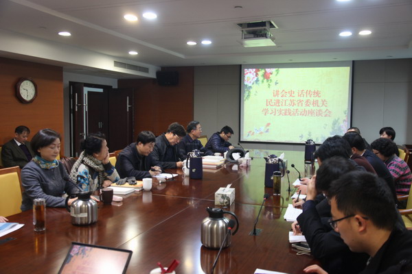 12月29日,“讲会史 话传统 民进江苏省委机关学习实践活动座谈会”在省委机关会议室举行。会议特邀民进省委老领导陈凌孚、虞志敏和马新生参加。省委主委朱晓进、副主委徐菊英、秘书长王鲁彬及机关全体人员出席会议。