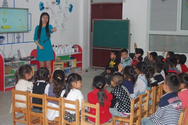 送实物的同时,市委会还带去了两名幼儿专家进行送教,其中丹阳市导士中心幼儿园副院长给大班的孩子和老师展示了《图形碰碰乐》,丹阳市天波实验幼儿园业务院长为中班孩子和来世展示了绘本《小熊进城》公开课,两节公开课为当地的幼儿园老师传经送宝,得到了该校教师的一致好评。