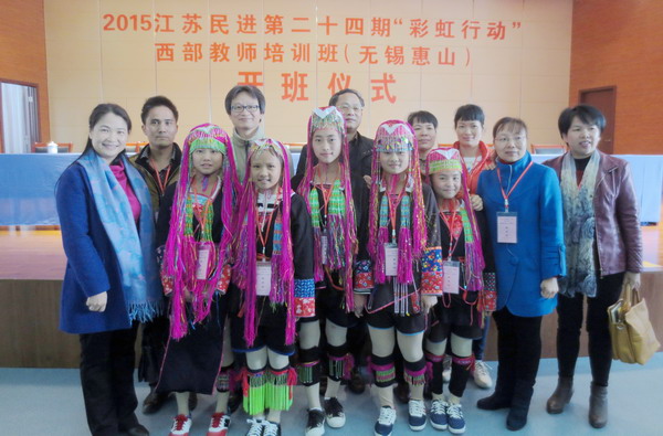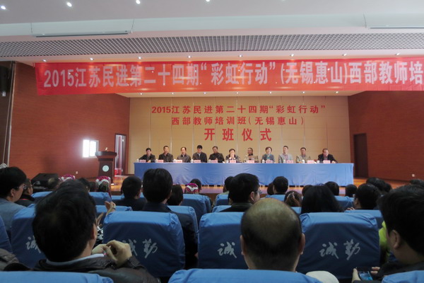 4月14日,江苏民进第24期“彩虹行动”西部教师培训班在无锡市惠山区堰桥初级中学举行开班仪式。本次培训由民进无锡惠山区基层委员会承办,来自广西、贵州、甘肃等地的30位教师和学生将通过教学讲座、经验交流、观摩学习、实地考察等系列活动,多渠道、多角度地与无锡师生沟通交流,相互学习,共同提高。民进中央社会服务部副部长刘文胜、民进江苏省委副主委徐菊英出席开班仪式。